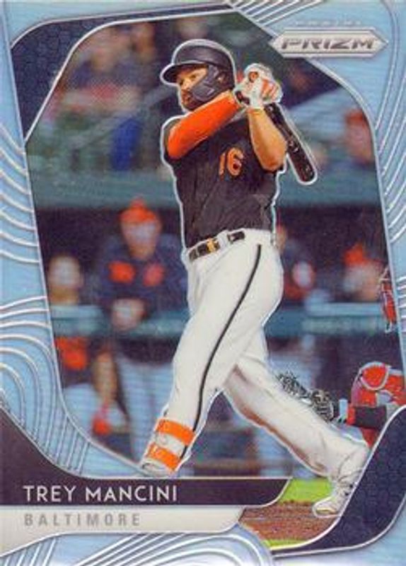 The Trey Mancini 2020 Prizm #249 Silver card is 1 of 42 Trey Mancini's card variations in the 2020 Prizm set being tracked by Sports Card Investor, including Base, Blue, Carolina Blue, Cosmic Haze, and Green.