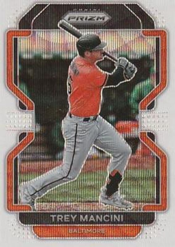 The Trey Mancini 2022 Prizm #107 White Wave card is 1 of 43 Trey Mancini's card variations in the 2022 Prizm set being tracked by Sports Card Investor, including Base, Blue, Blue Velocity, Carolina Blue, and Cosmic Haze.