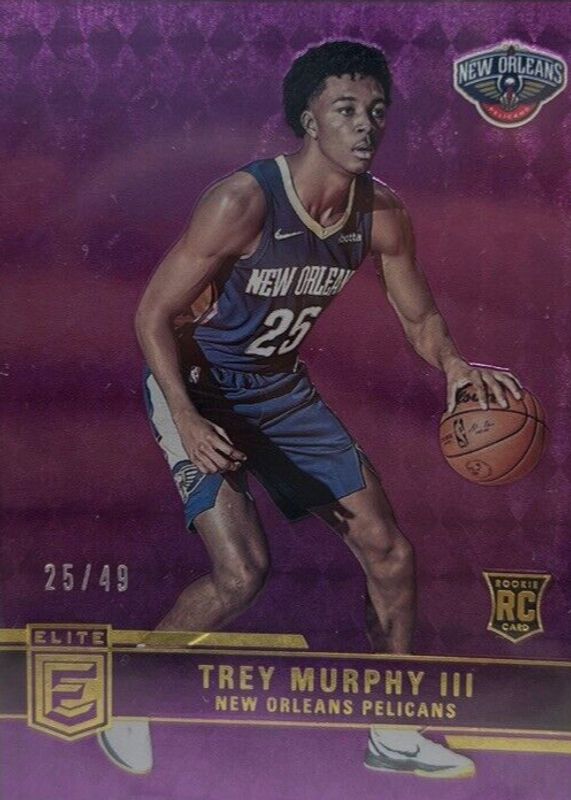 The Trey Murphy III 2021 Elite #232 Purple /49 Rookie card in Raw condition has not changed in price in the last 30 days and was last sold for $29.00 .