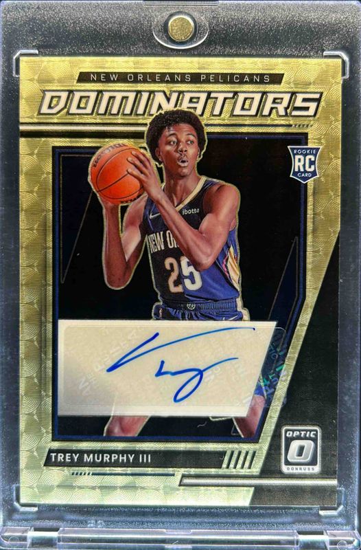 The Trey Murphy III 2021 Optic #RD-TMY Rookie Dominators Signatures - Gold Vinyl /1 card is 1 of 83 Trey Murphy III's card variations in the 2021 Optic set being tracked by Sports Card Investor, including Base, Blue Pulsar, Blue Velocity, Checkerboard, and Choice.