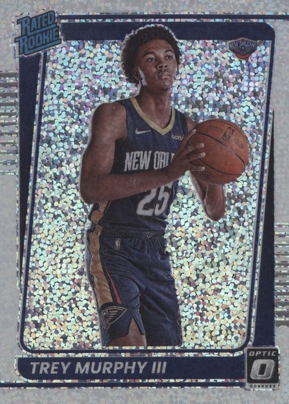 This card is 1 of 43 Trey Murphy III's card variations in the 2021 Optic set being tracked by Sports Card Investor, including Base, Blue Pulsar, Blue Velocity, Checkerboard, and Choice Red & Green.