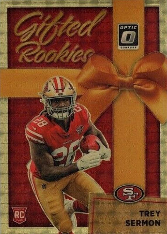 The Trey Sermon 2021 Optic #GR-20 Gifted Rookies - Gold Vinyl /1 card in Raw condition has not changed in price in the last 30 days and was last sold for $46.00 .