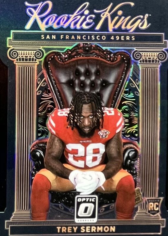 The Trey Sermon 2021 Optic #RK-19 Rookie Kings - Black Pandora /25 card in Raw condition has not changed in price in the last 30 days and was last sold for $26.00 .