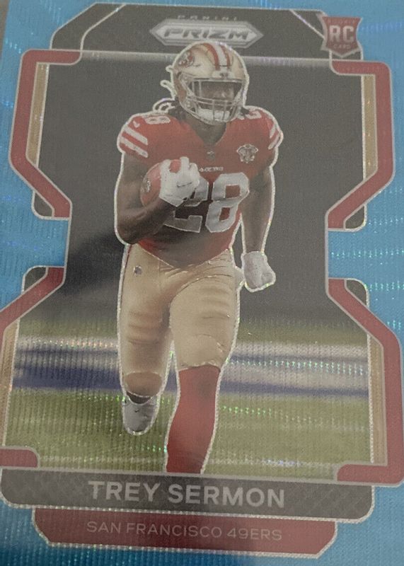 TREY SERMON 2021 PANINI PRIZM ROOKIE BLUE WAVE 49ERS #354 RC /199 Q3965
