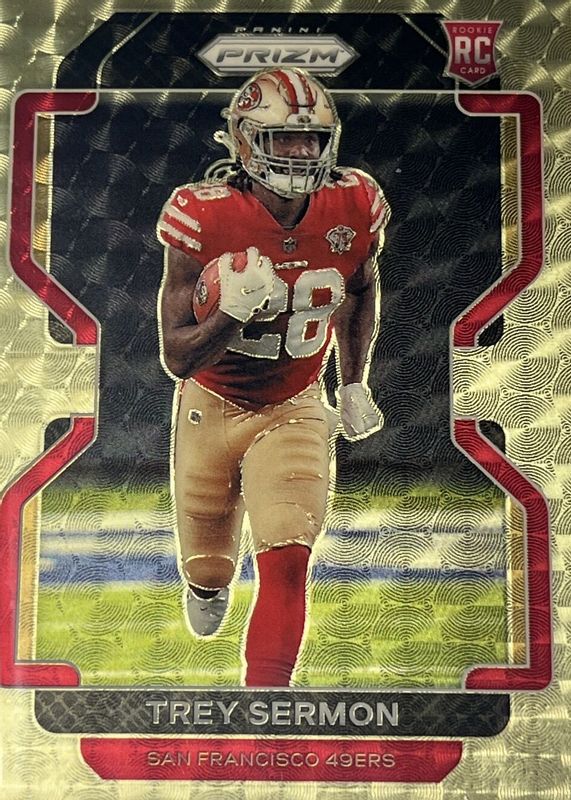 The Trey Sermon 2021 Prizm #354 Gold Vinyl /5 Rookie card in Raw condition has not changed in price in the last 30 days and was last sold for $48.00 .