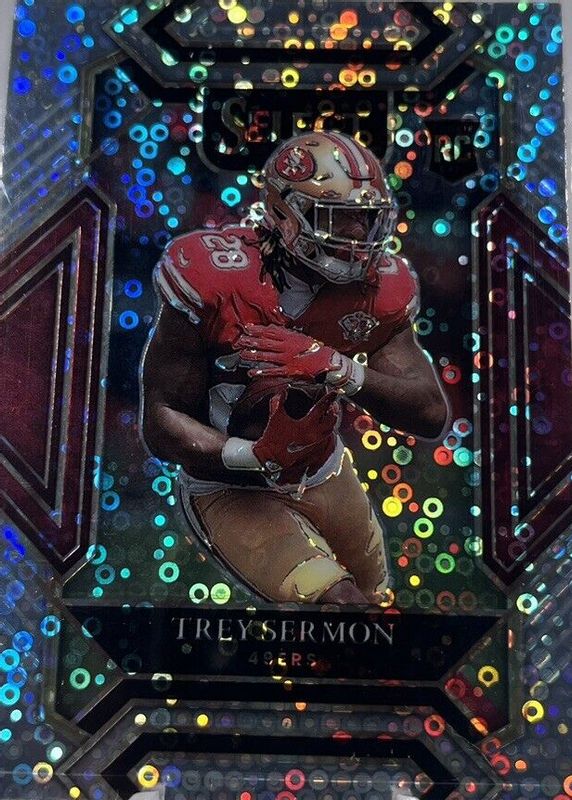 The Trey Sermon 2021 Select #268 Club Level Disco Rookie card in Raw condition has not changed in price in the last 30 days and was last sold for $1.00 .