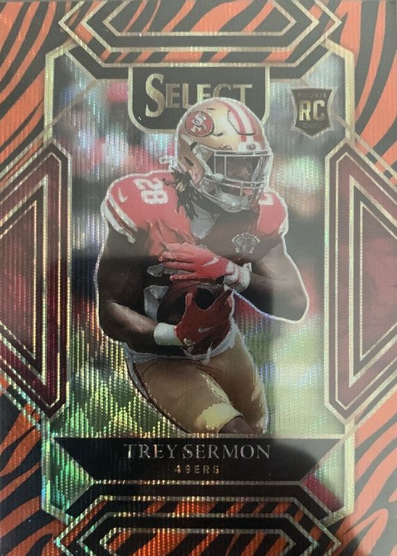 2021 Select Football TREY SERMON Club Level RC Tiger Stripe 49ers FOTL