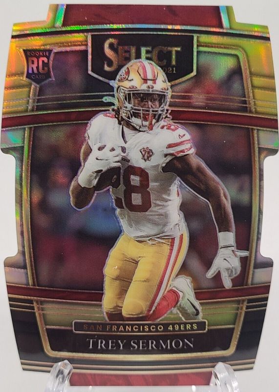 The Trey Sermon 2021 Select #68 Concourse Black & Gold Die-Cut Rookie card in Raw condition has not changed in price in the last 30 days and was last sold for $1.99 .