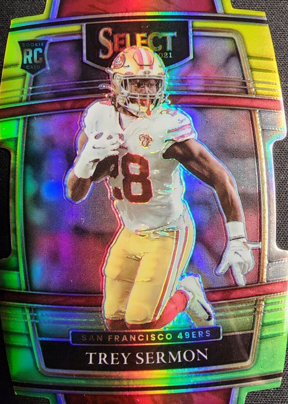 2021 Panini Select #68 Trey Sermon yellow green die cut rookie card 49ers
