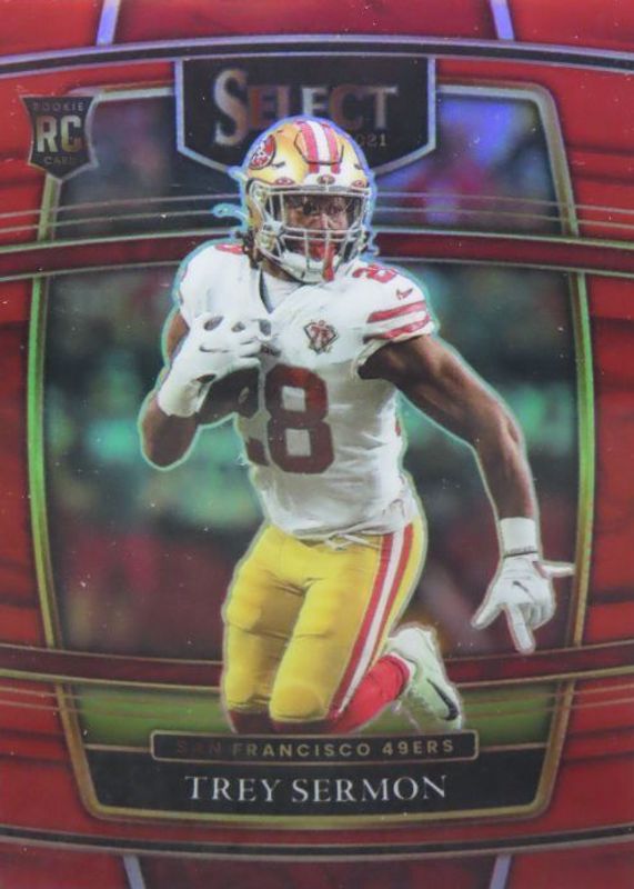 2021 Panini Select Concourse Red Prizm /99 Trey Sermon #68 Rookie RC 49ers