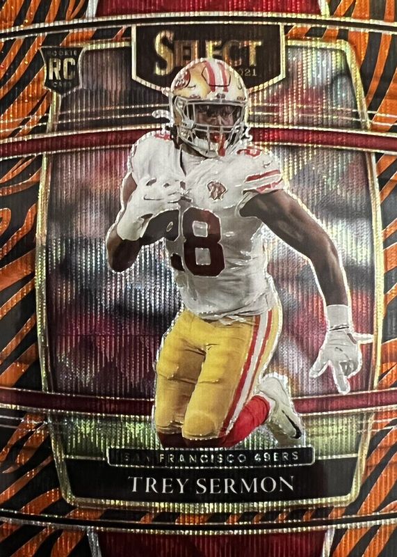 The Trey Sermon 2021 Select #68 Concourse Tiger /(SSP) Rookie card in Raw condition has not changed in price in the last 30 days and was last sold for $39.00 .