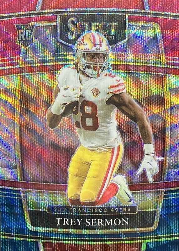 The Trey Sermon 2021 Select #68 Concourse Tri-Color /249 Rookie card in Raw condition has not changed in price in the last 30 days and was last sold for $0.99 .