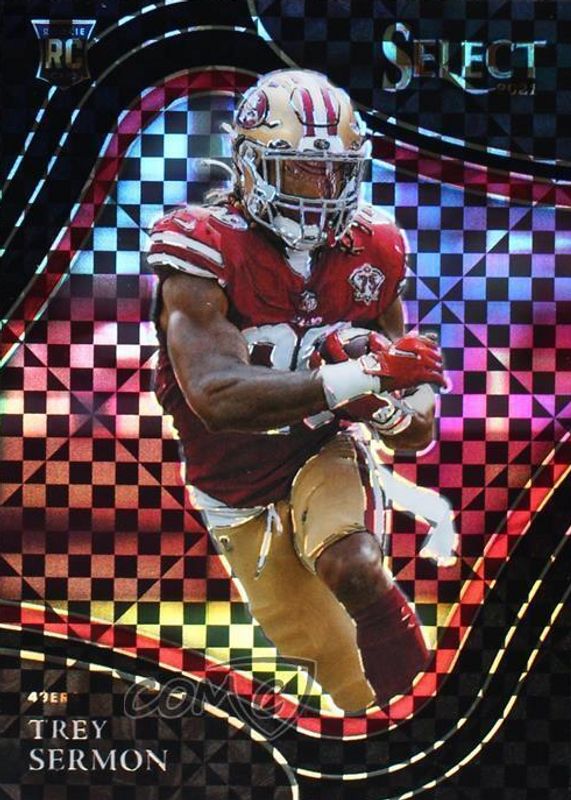 This card is 1 of 134 Trey Sermon's card variations in the 2021 Select set being tracked by Sports Card Investor, including Club Level, Concourse, Field Level, Premier Level, and Club Level Black & Gold Die-Cut.