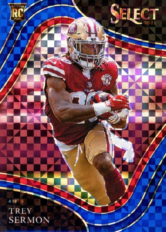 The Trey Sermon 2021 Select #368 Field Level Blue /49 Rookie card in Raw condition has not changed in price in the last 30 days and was last sold for $1.75 .