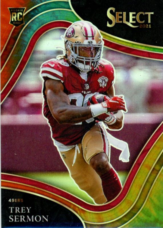 The Trey Sermon 2021 Select #368 Field Level Tie-Dye /25 Rookie card in Raw condition has not changed in price in the last 30 days and was last sold for $10.50 .