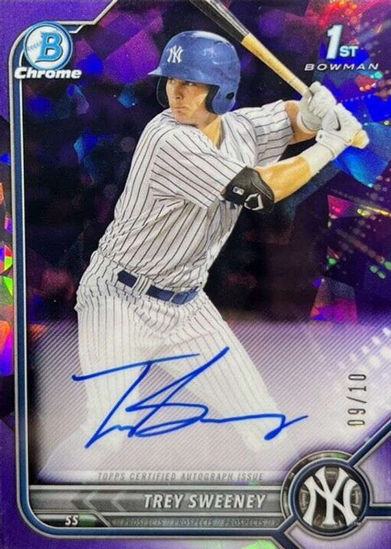 Recent Sales of Trey Sweeney 2022 Bowman Sapphire Edition #BSPA-TS Chrome Prospect Auto - Purple /10 (1st) Raw