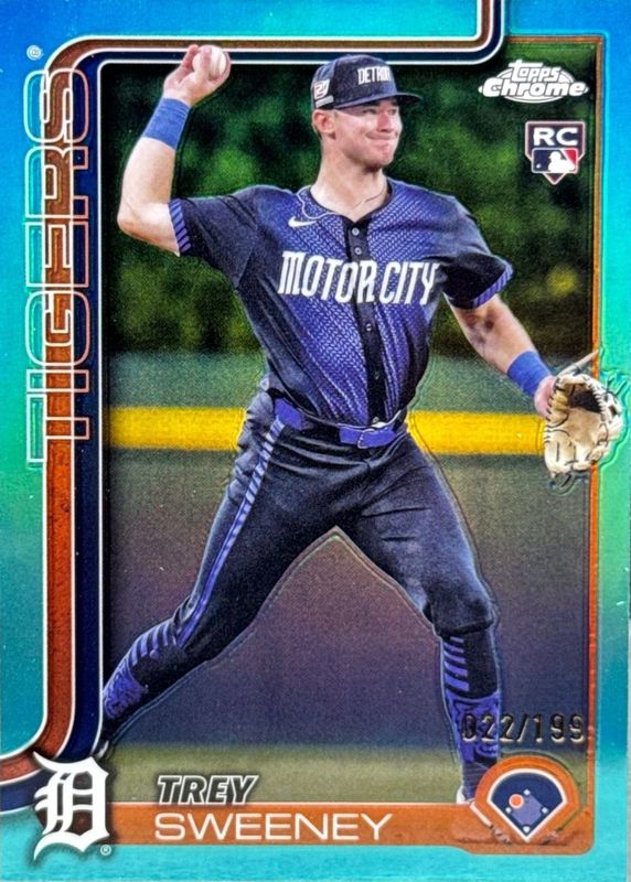 Trey Sweeney 2025 Topps Chrome RC Aqua /199 Refractor Rookie #6 Tigers