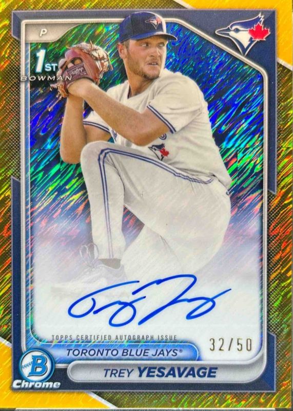 TREY YESAVAGE 2024 BOWMAN CHROME DRAFT GOLD SHIMMER AUTO #CPA-TY 32/50 1ST RC