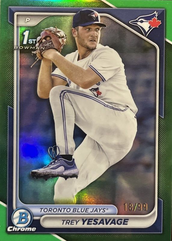 Trey Yesavage 2024 Bowman Draft Chrome Green Refractor /99 Blue Jays RC #BDC-92