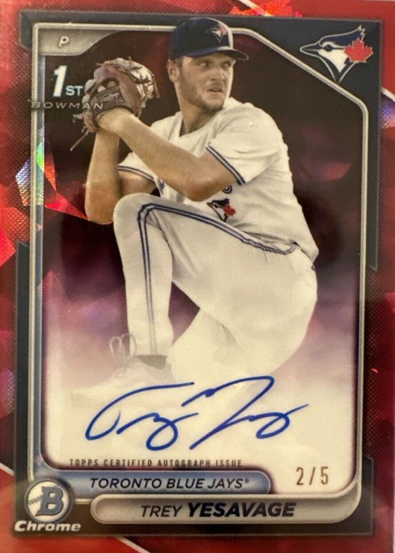 Trey Yesavage 2024 Bowman Draft Sapphire Edition #CPA-TY Chrome Prospect Auto - Red /5 (1st) RAW Price Guide