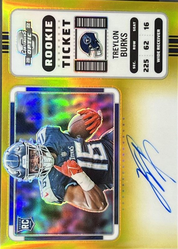 Auctions Ending Soon for Treylon Burks 2022 Contenders Optic #137 Rookie Ticket Auto Variation - Gold /10 RAW