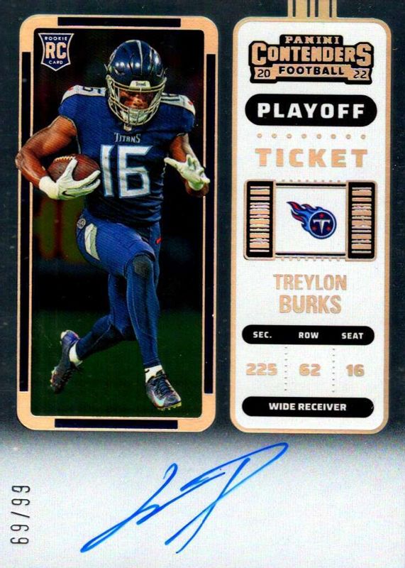 2022 Contenders Treylon Burks Playoff Ticket RC Rookie Auto #44/99 Titans