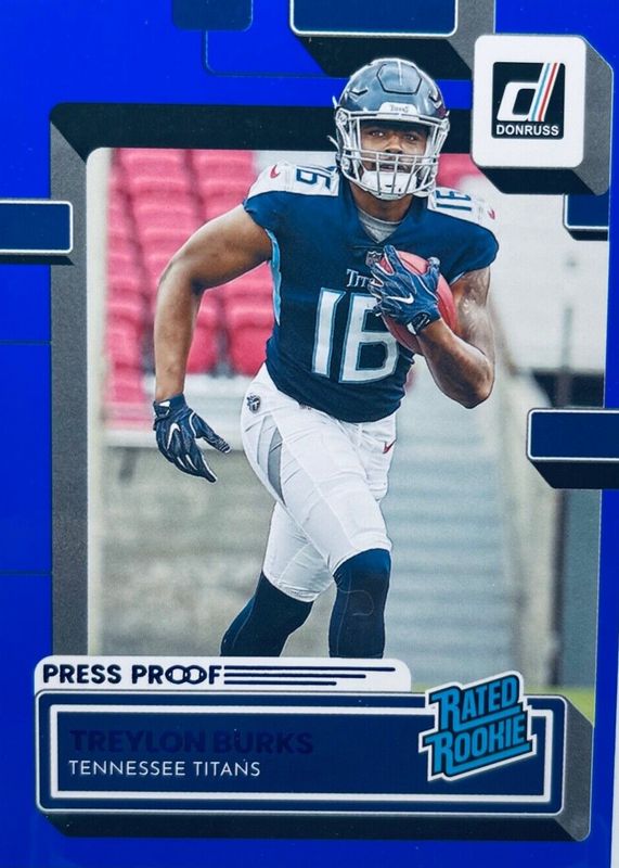 2022 Donruss Football Treylon Burks Tennessee Titans Press Proof Blue Rookie 312