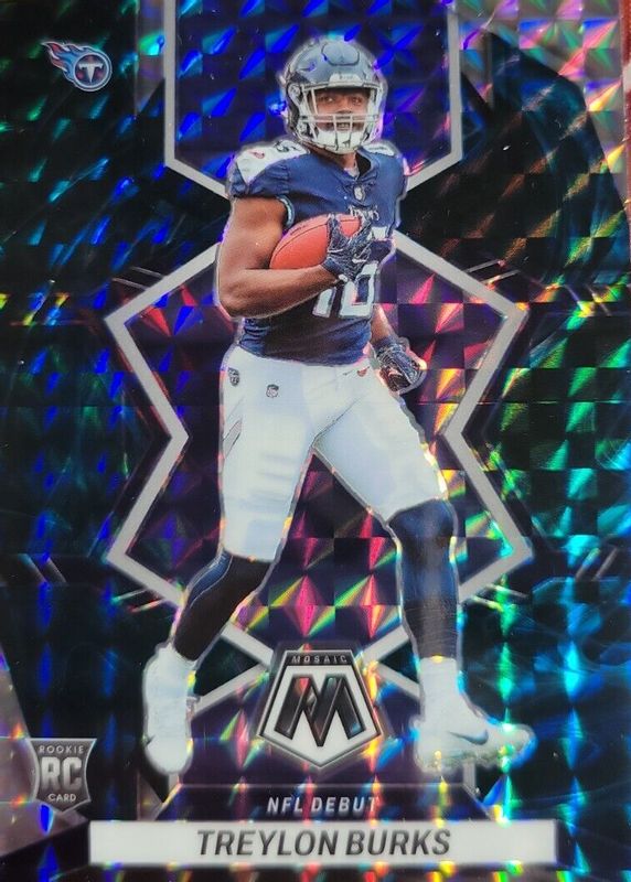 The Treylon Burks 2022 Mosaic #279 NFL Debut - Genesis /(SSP) Rookie card in Raw condition has not changed in price in the last 30 days and was last sold for $12.27 .