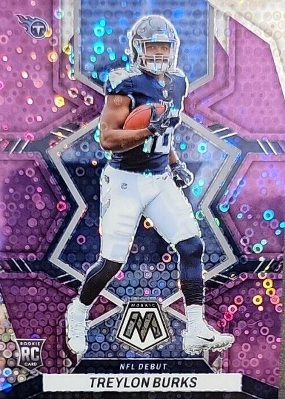 The Treylon Burks 2022 Mosaic #279 NFL Debut - No Huddle Purple /50 Rookie card in Raw condition has not changed in price in the last 30 days and was last sold for $2.99 .