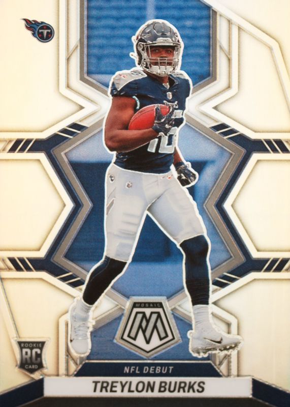 The Treylon Burks 2022 Mosaic #279 NFL Debut - Silver Rookie card in Raw condition has not changed in price in the last 30 days and was last sold for $1.49 .
