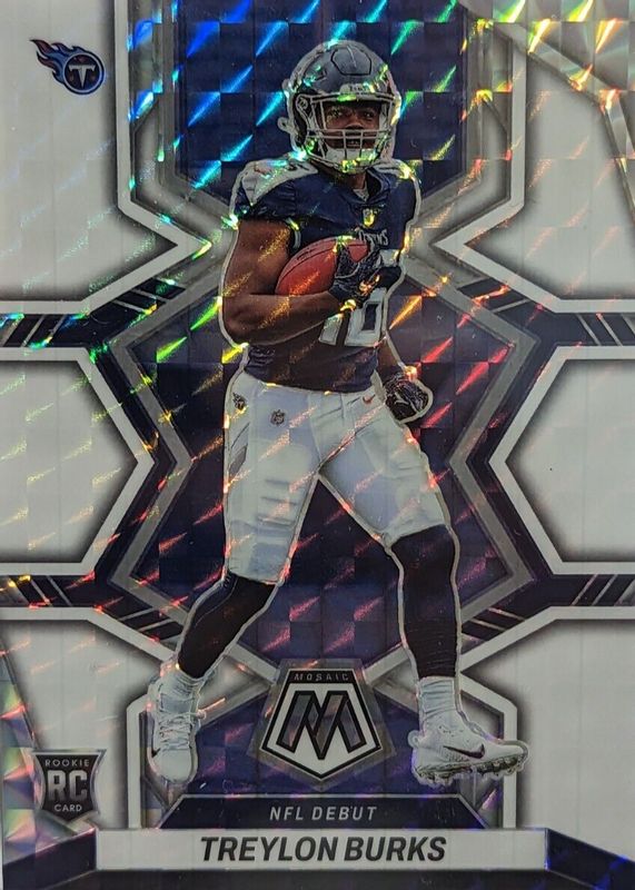 The Treylon Burks 2022 Mosaic #279 NFL Debut - White /25 Rookie card in Raw condition has not changed in price in the last 30 days and was last sold for $3.25 .
