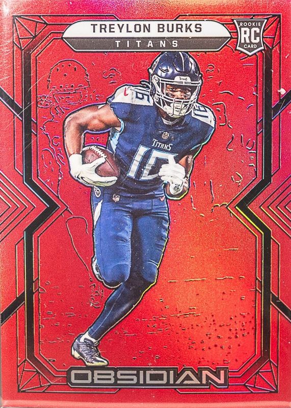 The Treylon Burks 2022 Obsidian #115 Electric Etch Red Flood /29 Rookie card in Raw condition has not changed in price in the last 30 days and was last sold for $1.80 .