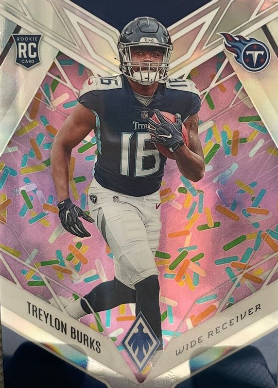 The Treylon Burks 2022 Phoenix #112 Sprinkles /(SSP) Rookie card in Raw condition has not changed in price in the last 30 days and was last sold for $22.50 .
