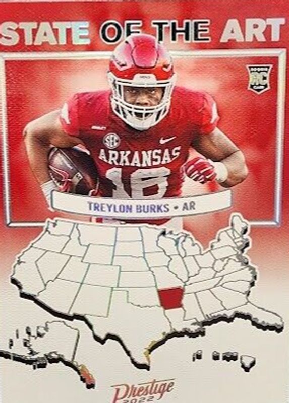 The Treylon Burks 2022 Prestige #SA-9 State of the Art /(SSP) Rookie card in Raw condition has not changed in price in the last 30 days and was last sold for $5.25 .