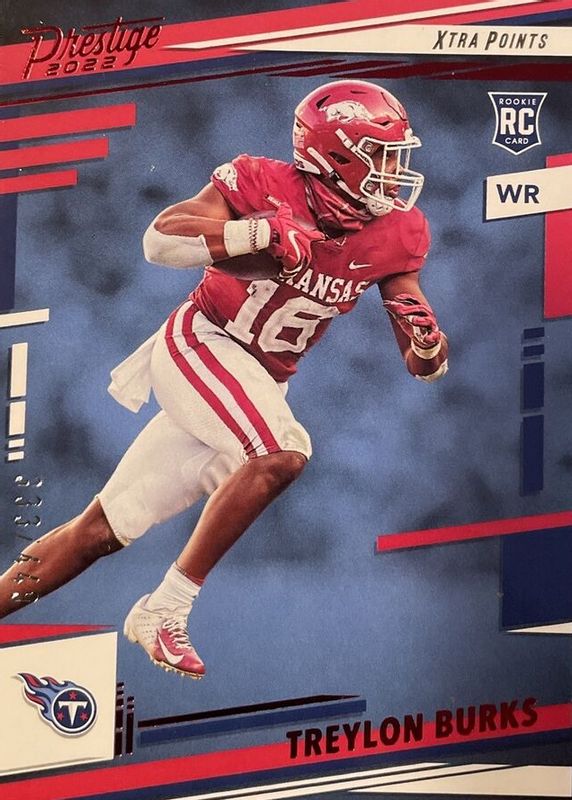 The Treylon Burks 2022 Prestige #316 Xtra Points Red /449 Rookie card in Raw condition has not changed in price in the last 30 days and was last sold for $1.78 .