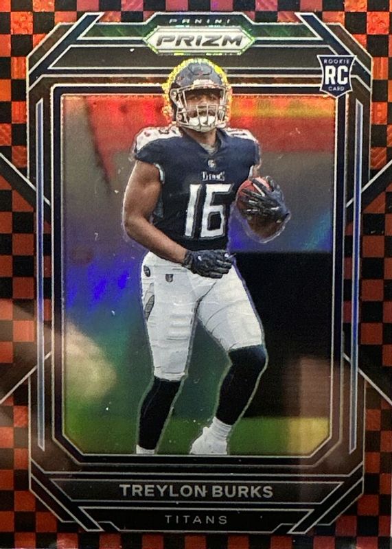 The Treylon Burks 2022 Prizm #313 Black & Red Checker /(SSP) Rookie card in Raw condition has not changed in price in the last 30 days and was last sold for $8.99 .