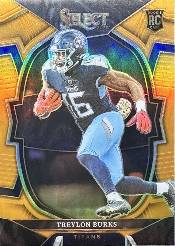 The Treylon Burks 2022 Select #39 Concourse Orange /49 Rookie card in Raw condition has not changed in price in the last 30 days and was last sold for $14.00 .