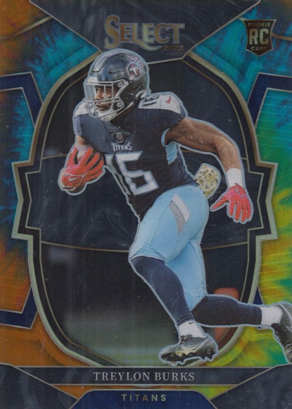 The Treylon Burks 2022 Select #39 Concourse Tie-Dye /25 Rookie card in Raw condition has not changed in price in the last 30 days and was last sold for $6.50 .