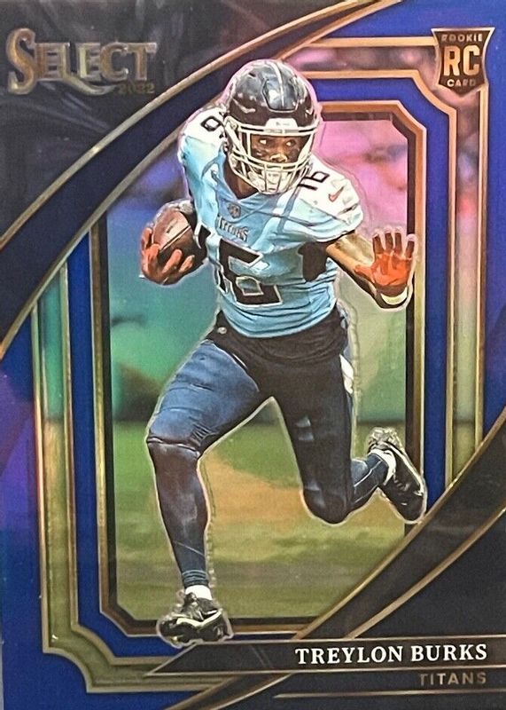 The Treylon Burks 2022 Select #352 Suite Level Blue /99 Rookie card in Raw condition has not changed in price in the last 30 days and was last sold for $1.99 .