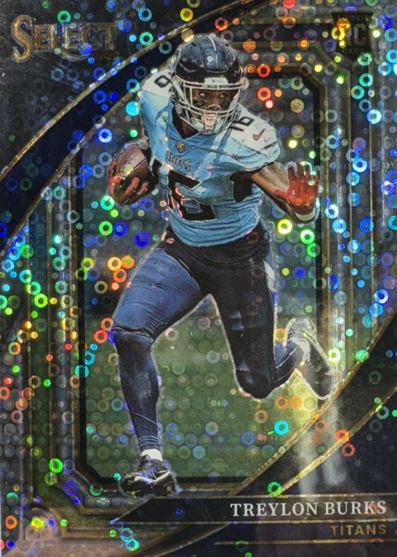 This card is 1 of 135 Treylon Burks' card variations in the 2022 Select set being tracked by Sports Card Investor, including Concourse, Premier Level, Suite Level, Concourse Black & Green Die-Cut, and Concourse Black & Red Die-Cut.