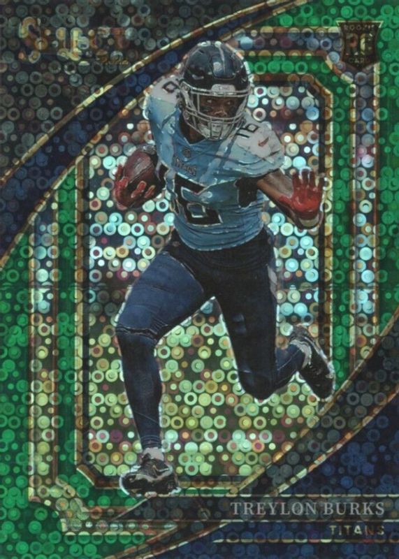 The Treylon Burks 2022 Select #352 Suite Level Green Disco /5 Rookie card in Raw condition has not changed in price in the last 30 days and was last sold for $140.00 .