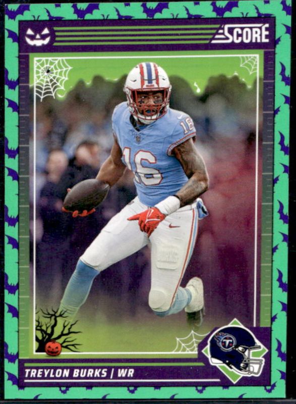 The Treylon Burks 2024 Score-A-Treat #275 Green Bats card is 1 of 3 Treylon Burks' card variations in the 2024 Score-A-Treat set being tracked by Sports Card Investor, including Base, and Trick or Treat /99.