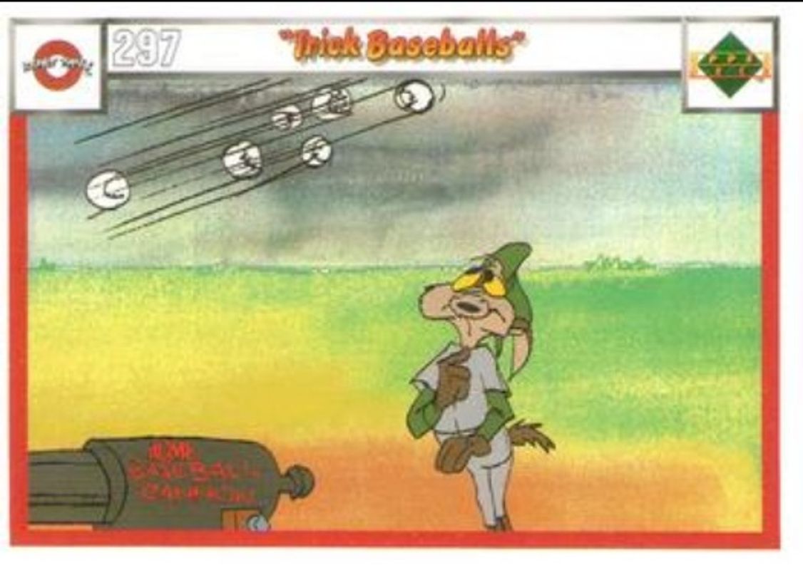 Other popular players in the 1990 Upper Deck Comic Ball set include Magnetic Field, Squeeze Play, Porky Pig and Charlie Dog, Acme Battle, and Curve Ball.