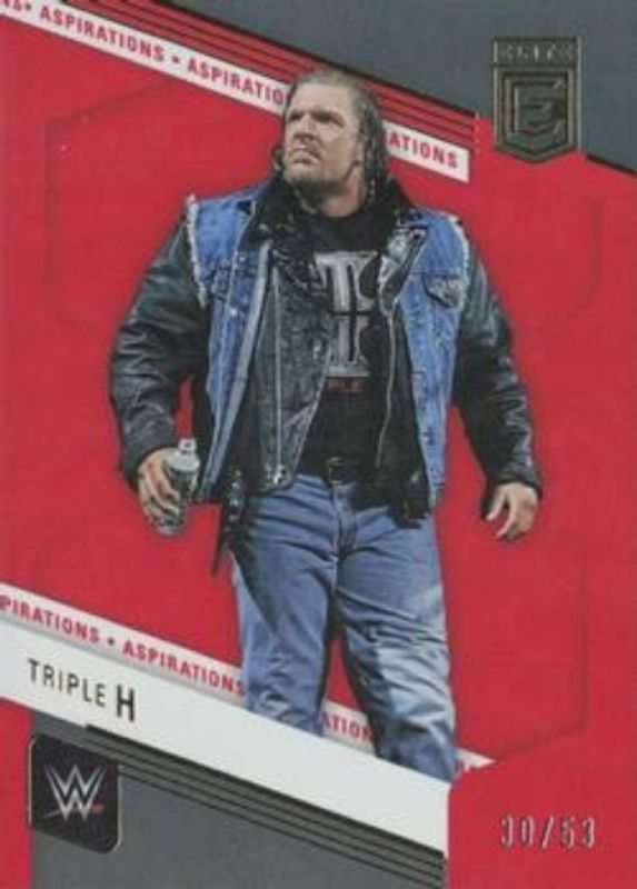 The Triple H 2023 Elite WWE #133 Aspirations /53 card is 1 of 37 Triple H's card variations in the 2023 Elite WWE set being tracked by Sports Card Investor, including Base, Green, Pink, Razzle Dazzle, and Red.