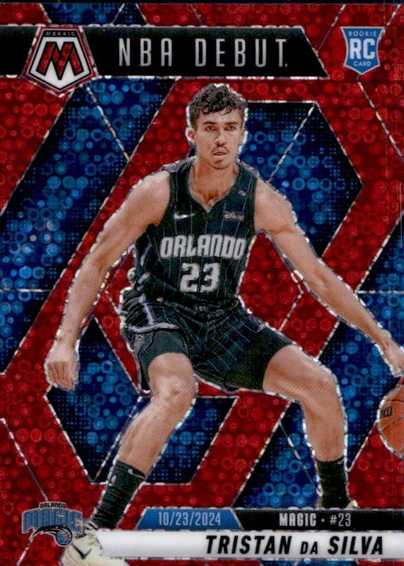 The Tristan da Silva 2024 Mosaic #266 NBA Debut - Fast Break Red /99 Rookie card in Raw condition has not changed in price in the last 30 days and was last sold for $3.00 .