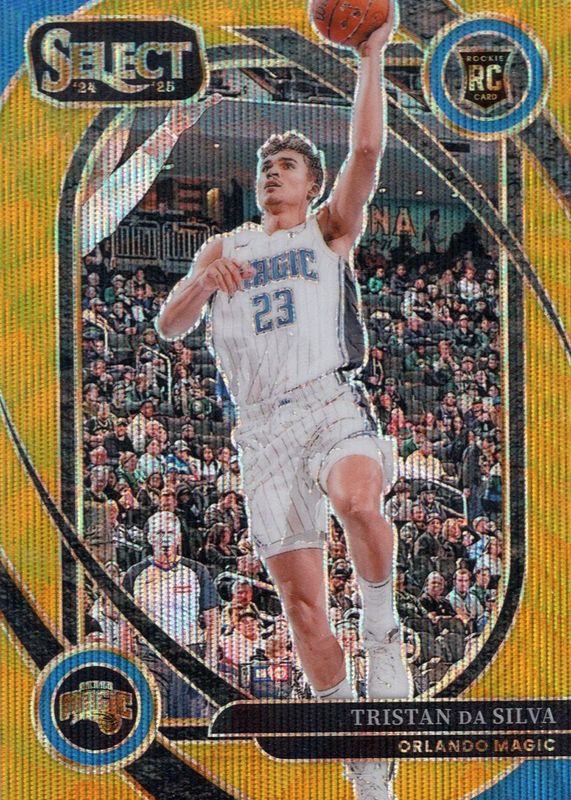 The Tristan da Silva 2024 Select #272 Courtside Gold Wave /10 Rookie card in Raw condition has not changed in price in the last 30 days and was last sold for $40.00 .