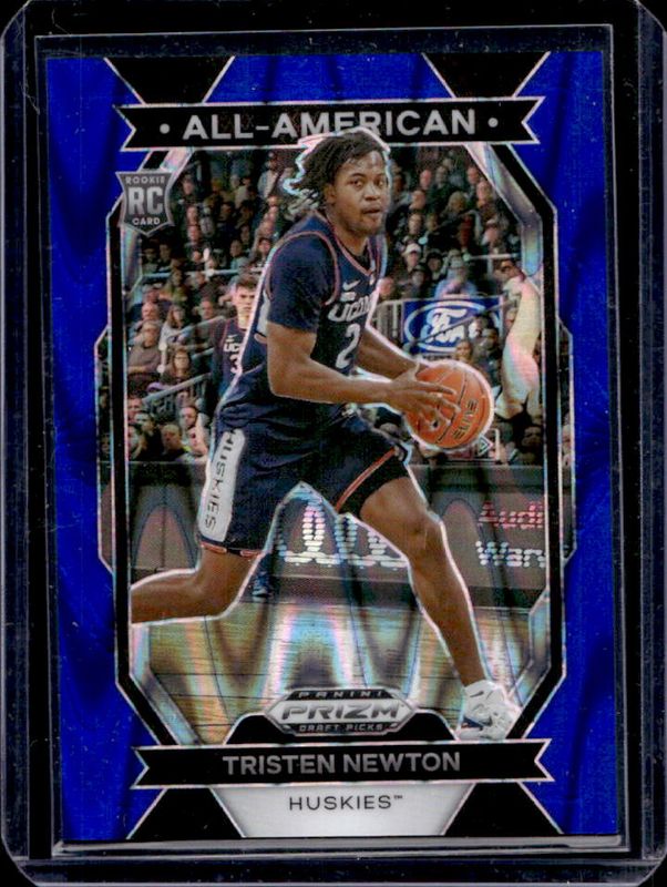 The Tristen Newton 2024 Prizm Draft Picks #9 All-American - Blue Seismic /149 Rookie card is 1 of 94 Tristen Newton's card variations in the 2024 Prizm Draft Picks set being tracked by Sports Card Investor, including Base, Green, Green Wave, Hyper, and Orange Ice.