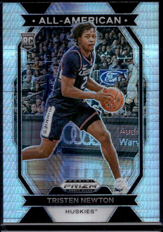 The Tristen Newton 2024 Prizm Draft Picks #9 All-American - Hyper Rookie card is 1 of 94 Tristen Newton's card variations in the 2024 Prizm Draft Picks set being tracked by Sports Card Investor, including Base, Green, Green Wave, Hyper, and Orange Ice.