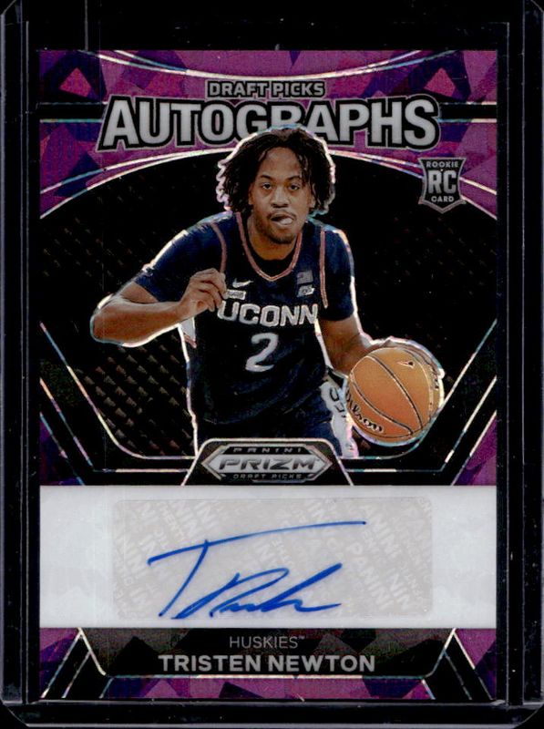 The Tristen Newton 2024 Prizm Draft Picks #016 Draft Picks Autographs - Purple Ice /99 Rookie card is 1 of 94 Tristen Newton's card variations in the 2024 Prizm Draft Picks set being tracked by Sports Card Investor, including Base, Green, Green Wave, Hyper, and Orange Ice.