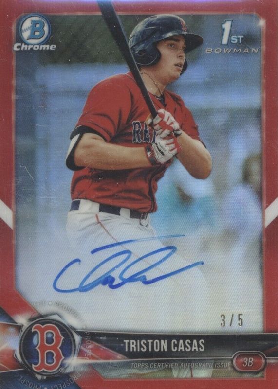 Best Prices Available For Sale of Triston Casas 2018 Bowman Draft #CDA-TC Chrome DP Auto - Red Refractor /5 (1st)